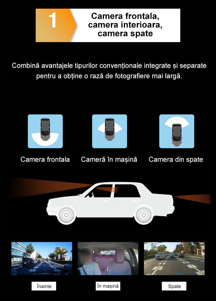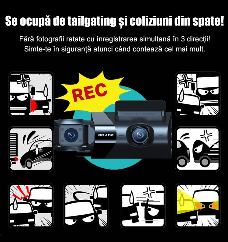 Recorder auto HD WiFi cu trei înregistrări