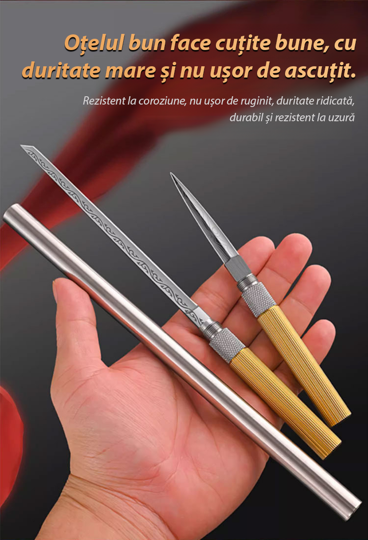 Cuțit de ceai și ac de autoapărare pentru exterior, integrate într-un singur instrument.